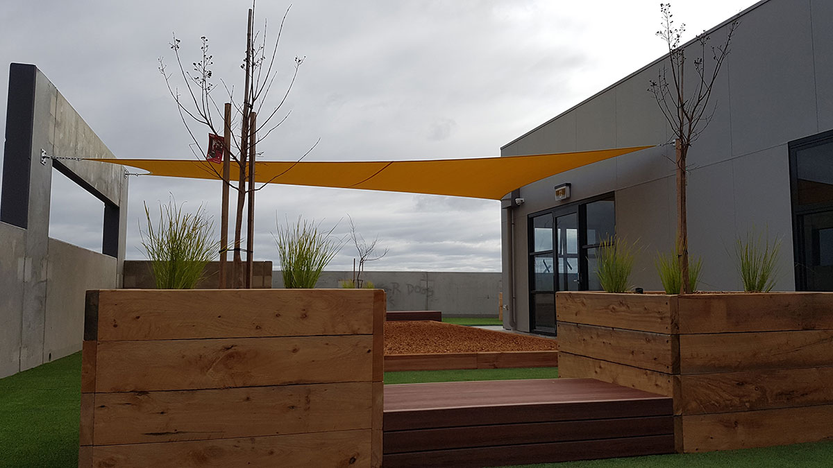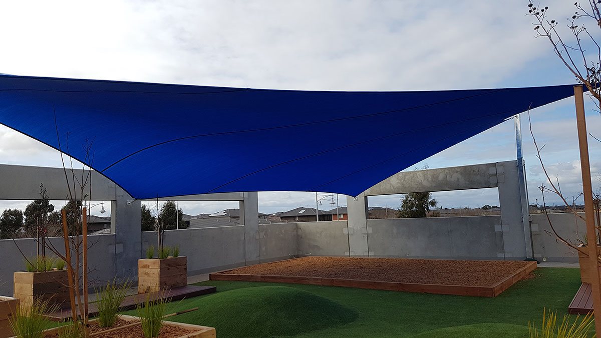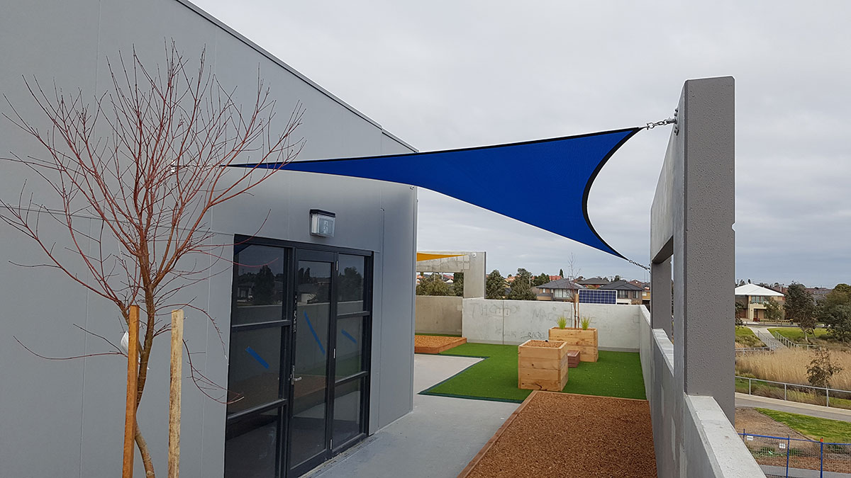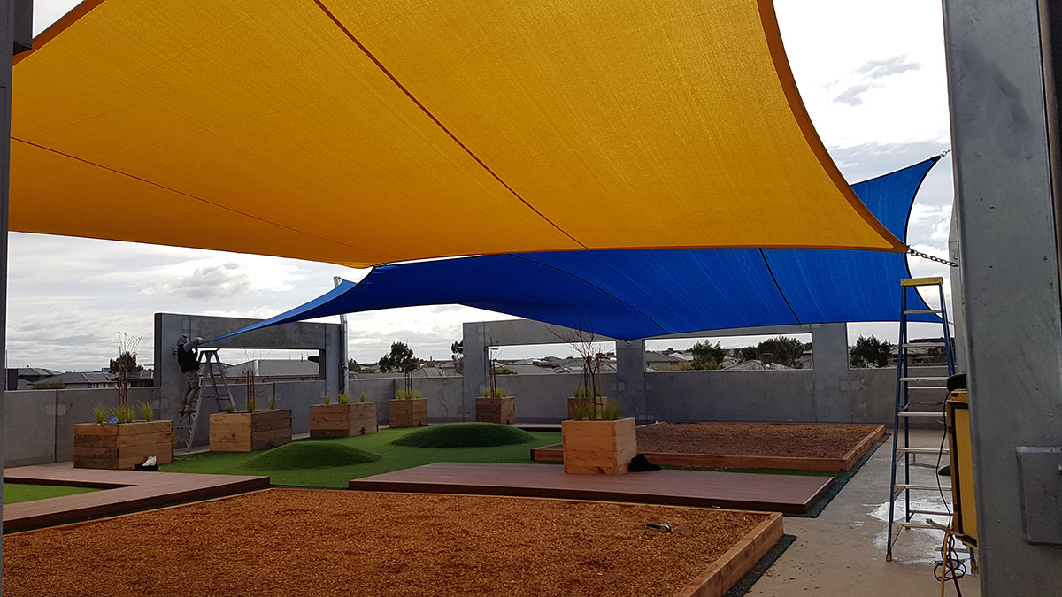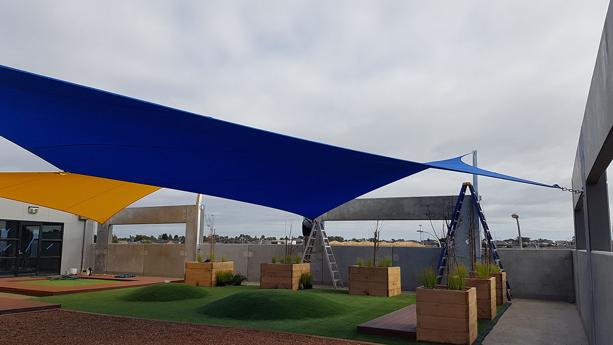 Multifield Construction Group approached us during the early stages of construction of Lalor Preschool. They were seeking sun and general weather protection for the top level of the building. Structures by Design took to the drawing board, designing a series of practical yet aesthetically pleasing shade sails for the exposed area.