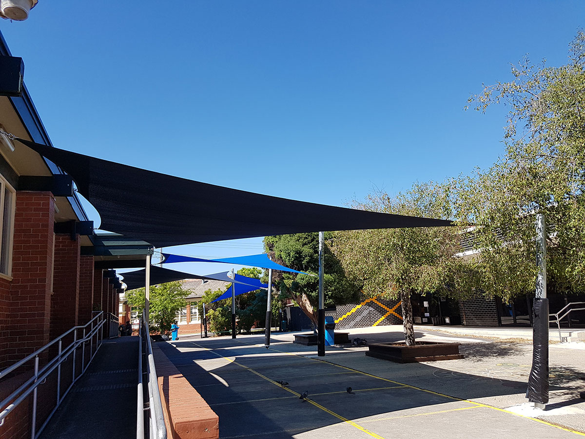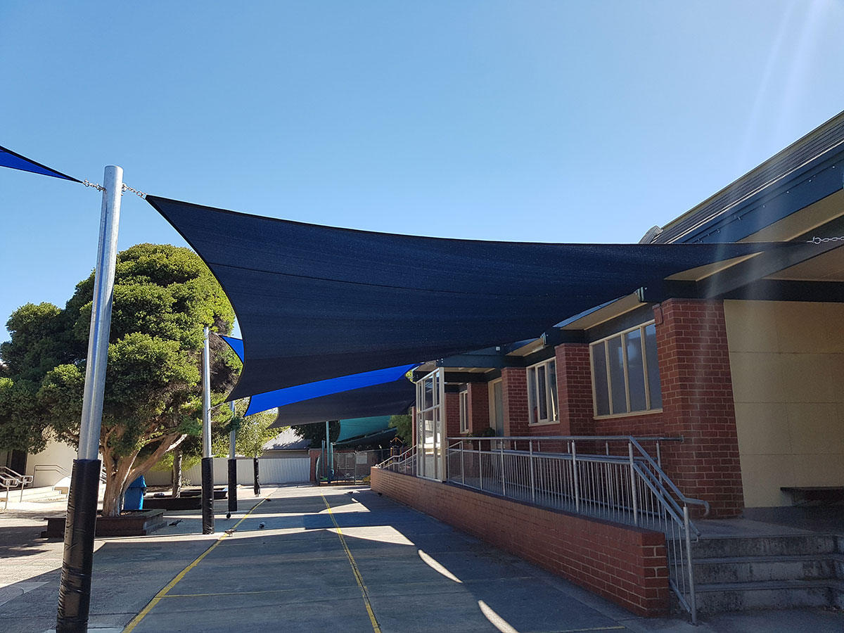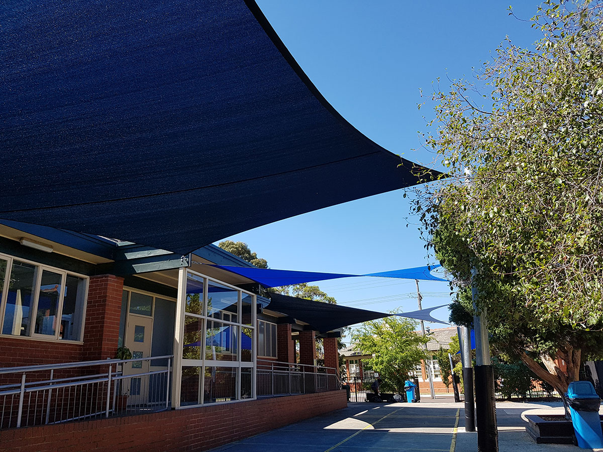 St Monica’s Primary School contacted us in need of a shade structure that would provide adequate sun protection for their school community. In particular, they needed a sheltered space where students could play whilst being protected from the elements. The area in question called for a unique, tailor-made design from us, consisting of multiple shade cloth sails that flowed effortlessly from the existing school building.