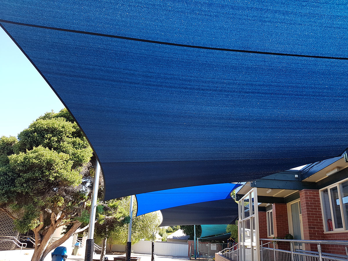 The outside area was immediately transformed by the addition of navy blue and aquamarine sails. Not only do the sails provide ample coverage for staff and students, but they also add to the overall aesthetic of the school.