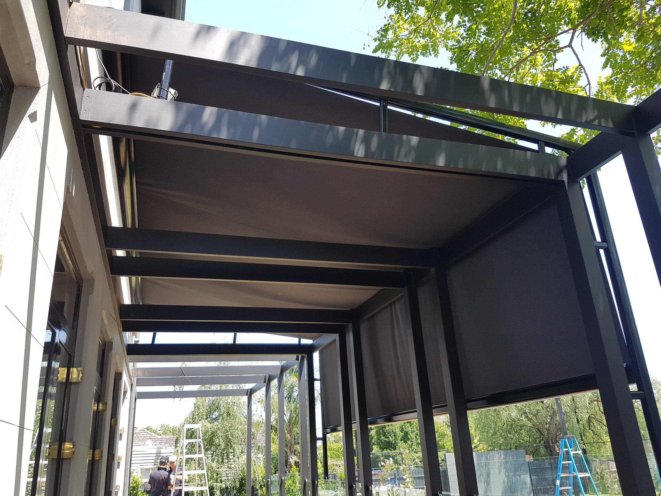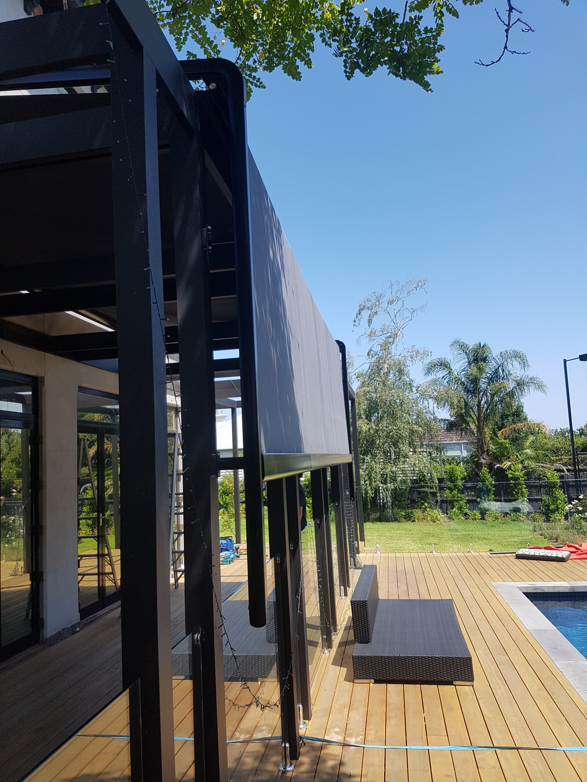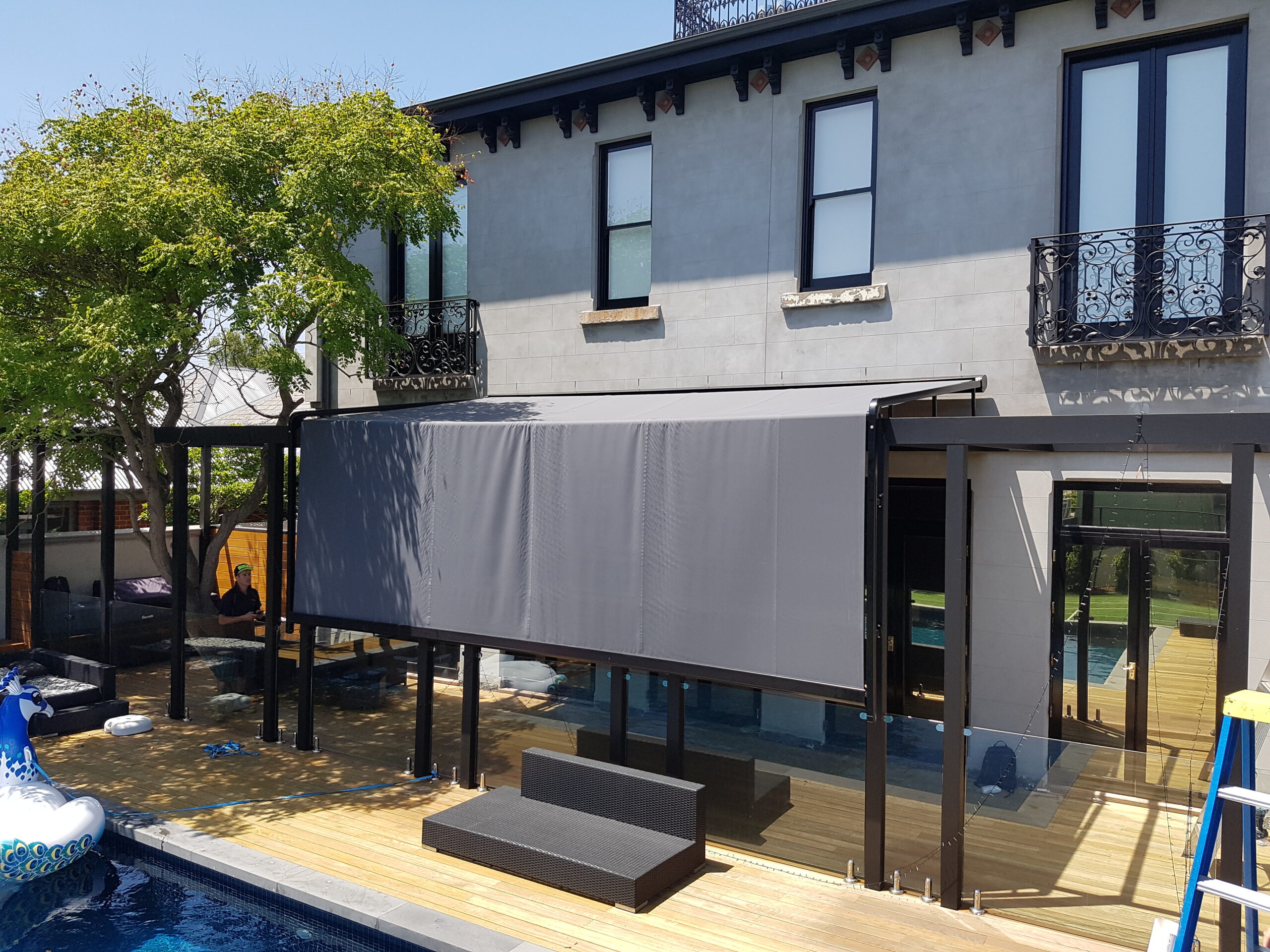 Designed for installation above glass roofs and pergolas, the Sundream stops heat and glare before they reach your interior. With a sleek, motorised design, heavy-duty components, and smooth, guided operation, it delivers reliable sun protection in style. Spanning up to 6.5m x 6.5m, it’s perfect for homes, cafes, and commercial spaces. Custom powdercoated to suit your look—performance meets elegance.