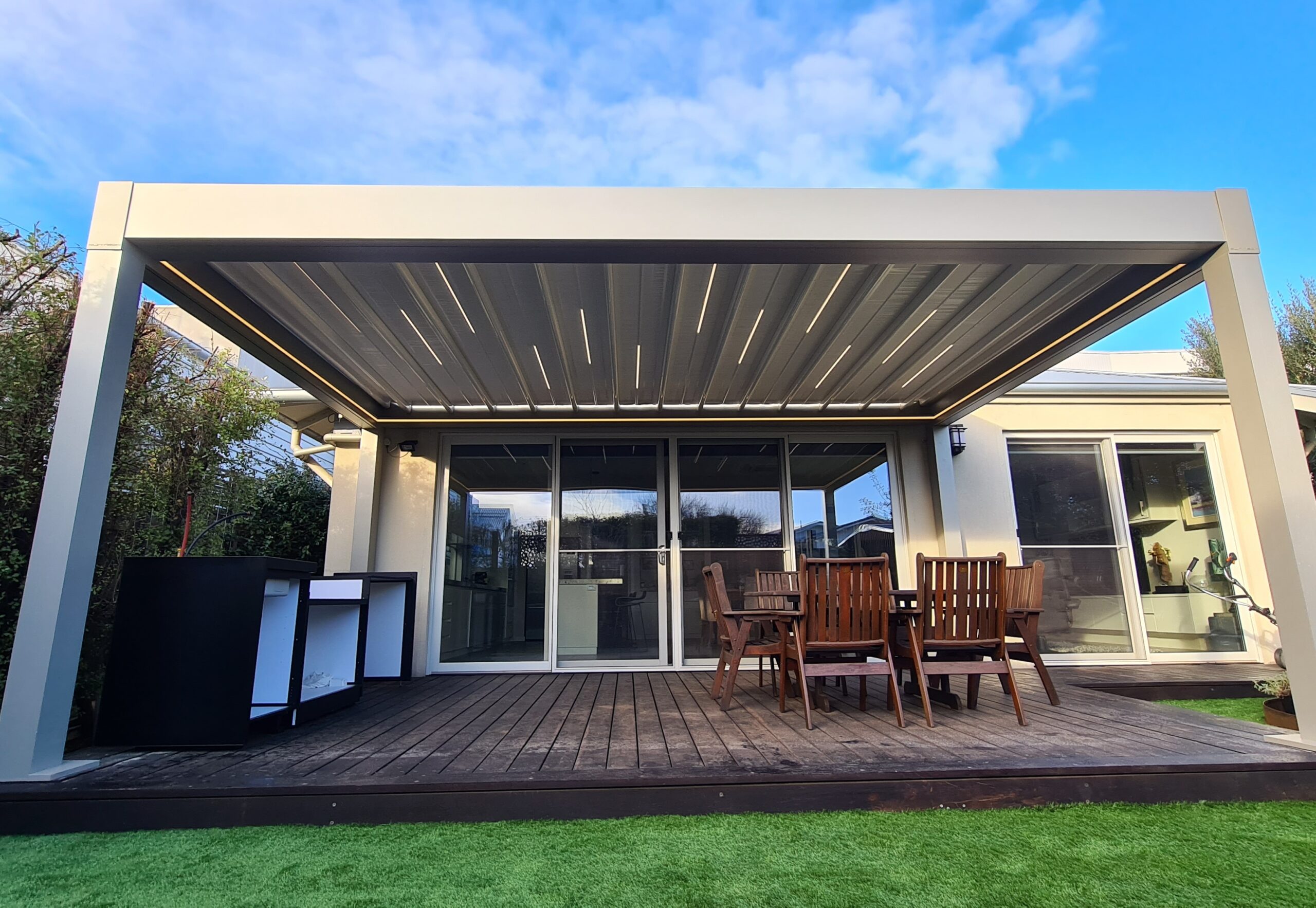 - Check after extreme weather events- These systems are designed to be incredibly durable and withstand most major weather events. However, you should always check your system after extreme weather, removing any debris and cleaning the louvre roof as per above advice. If you notice any damage or loose parts, isolate the area and contact a professional immediately.