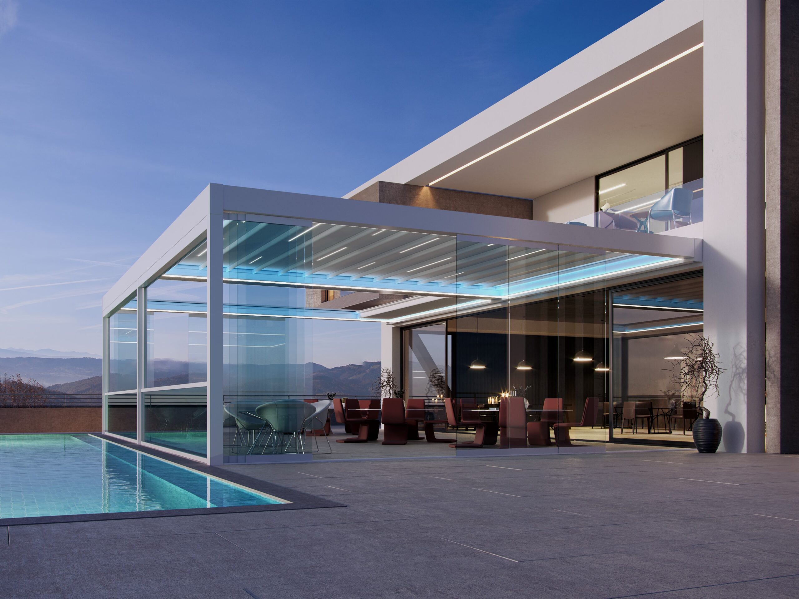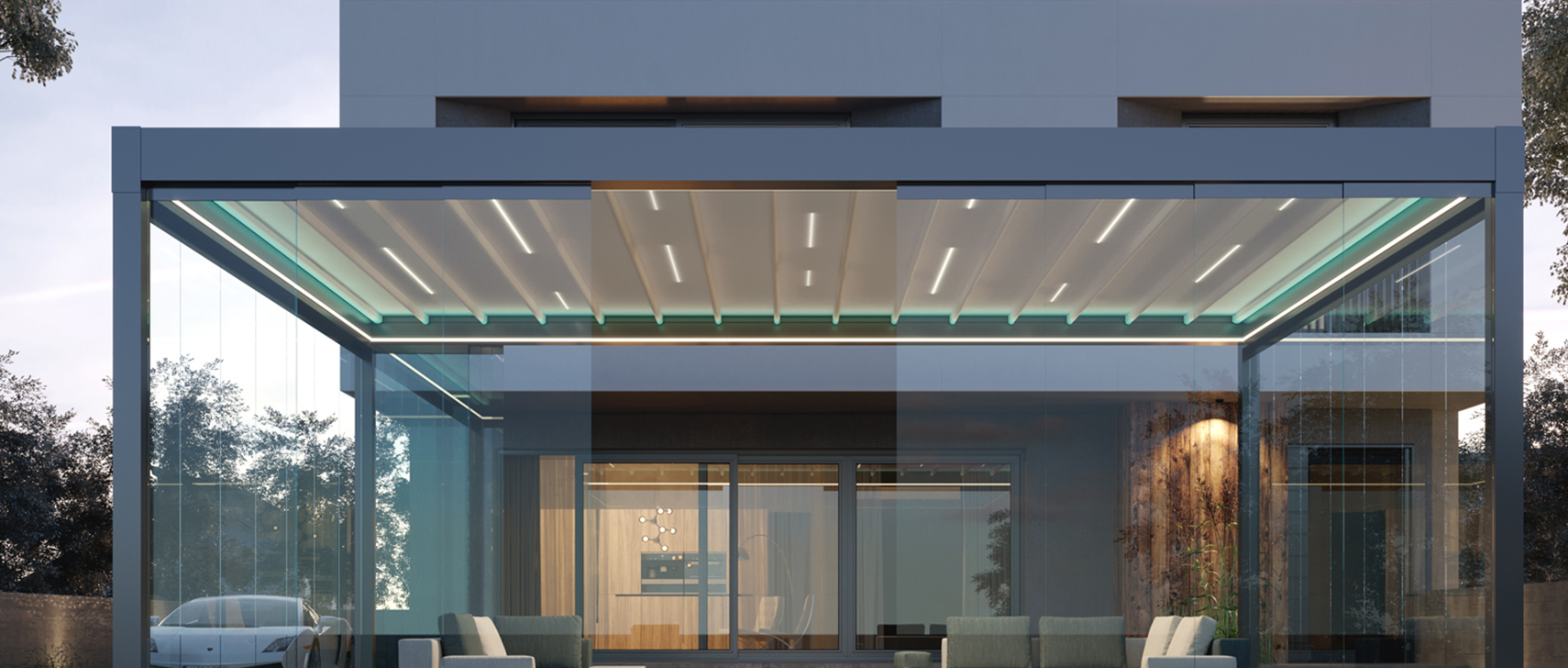 The Quattro Retractable Roof by Suntech redefines outdoor living with its distinctive architectural style and intelligent lighting control. With modular units up to 5m wide and 8m in projection, Quattro adapts effortlessly to any space—whether wall-mounted, freestanding, or integrated into existing structures—bringing luxury and versatility to residential and commercial settings alike.